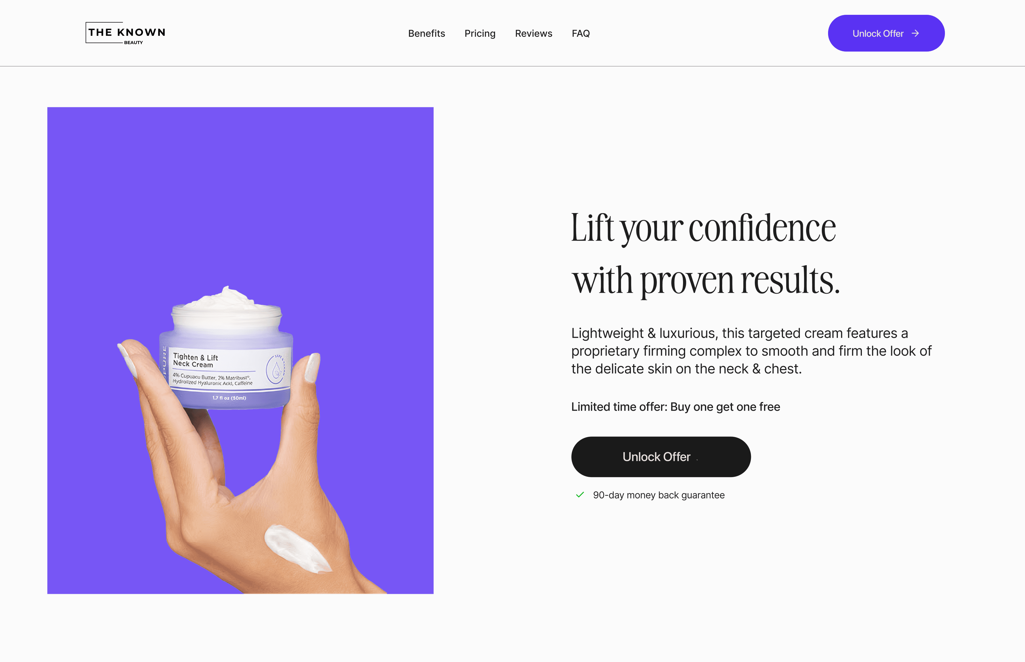The landing page they made for our neck cream is perfect. It's so clean and on-brand —exactly what we were looking for. You guys are seriously talented!